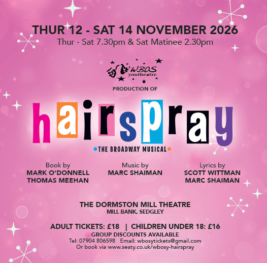 Dormston Mill Theatre SedgleyHairspray is a joyful, high-energy musical set in 1960s Baltimore, following Tracy Turnblad, a big-hearted teenager with big dreams. When she lands a spot on a popular TV dance show, Tracy uses her sudden fame to challenge social norms, fight for racial integration, and prove that everyone deserves a place in the spotlight — […]